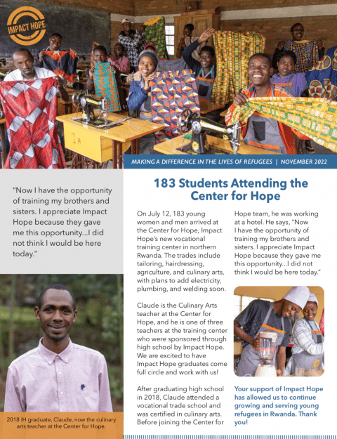 Stay up to date with everything that happens at Impact Hope